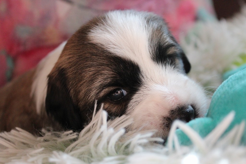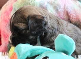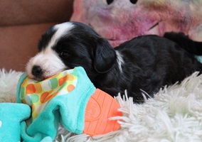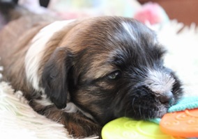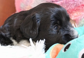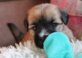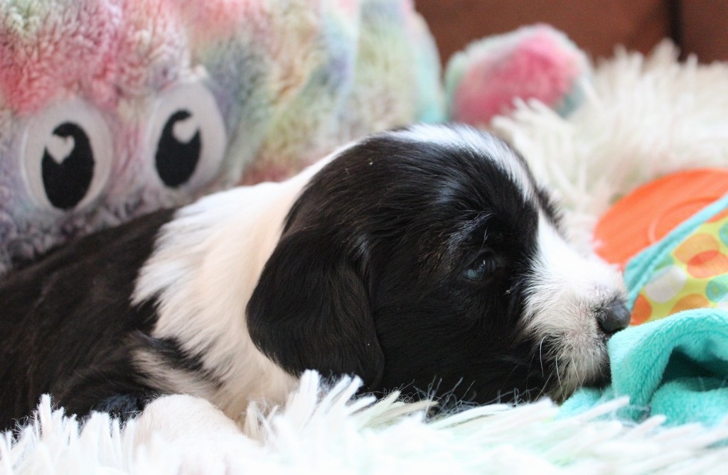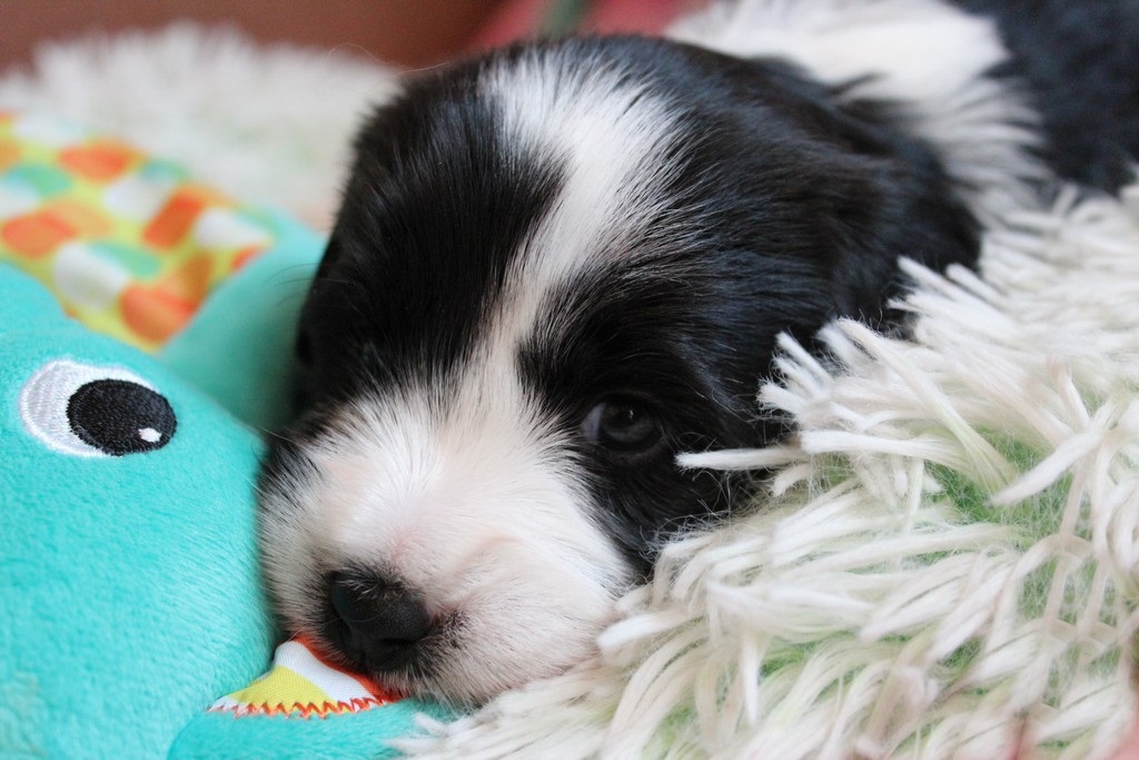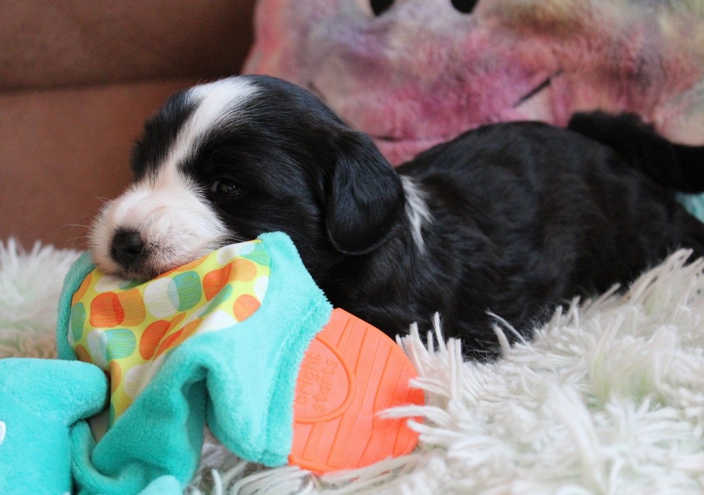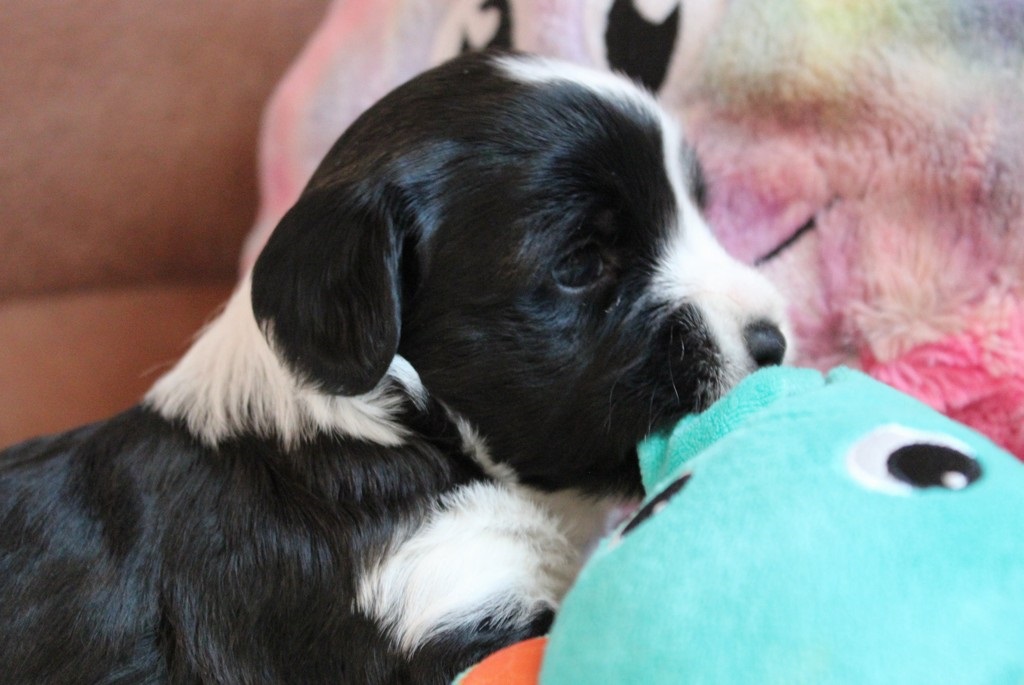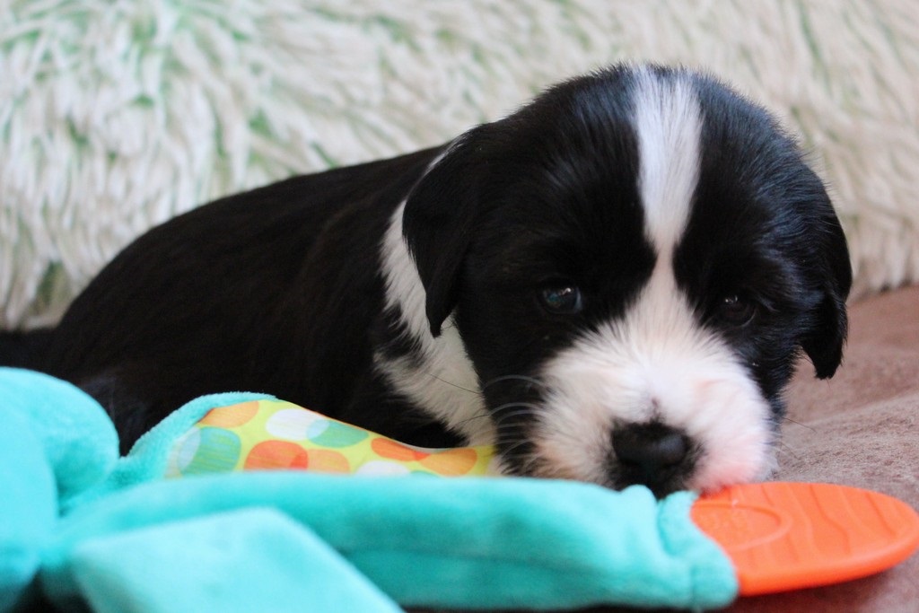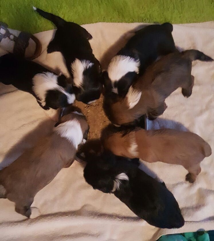 In der 4.Woche haben die Kleinen schon sehr viel gelernt! Bellen, Laufen, Beissen, Quitschen, Schwänzchenwendeln, Ballspielen,....