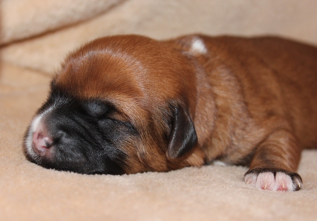 Die erste Woche verbringen unsere Welpen mit Essen, Schlafen und fleißig zunehmen.