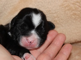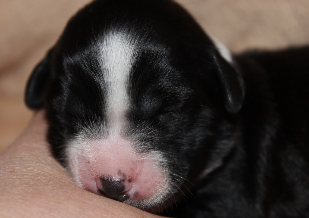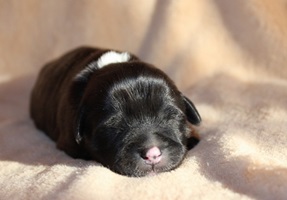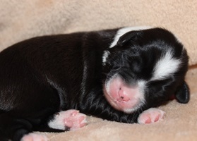 Hündin 2 Dunkelzobel mit weißen Abzeichen