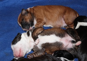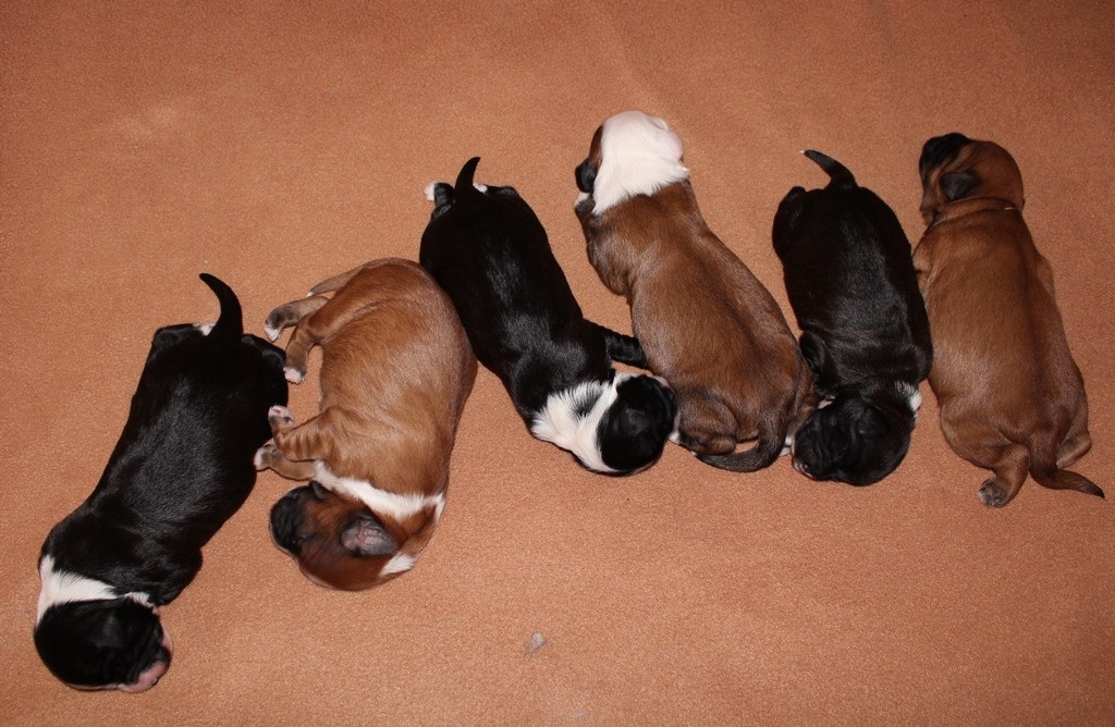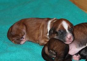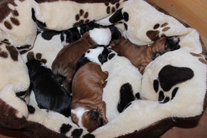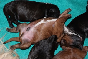 Die erste Woche verbringen unsere Welpen mit Essen, Schlafen und fleißig zunehmen.